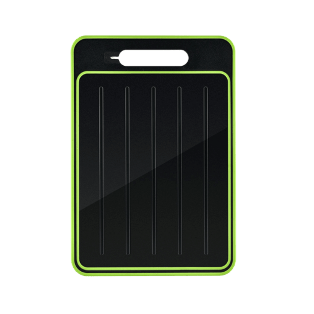O lado de alumínio da tábua utiliza tecnologia de descongelamento rápido, permitindo descongelar carnes com agilidade e segurança em poucos minutos.